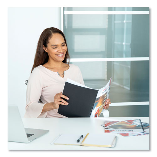 Presentation covers for thermal binding systems. Transparent front cover highlights title page. Elegant back cover in glossy white or linen-textured black. Compatible with most thermal binding systems. 15-Sheet Capacity—1/16" diameter. Back Cover C