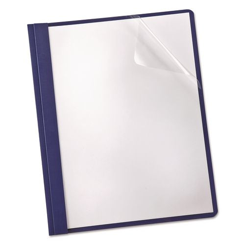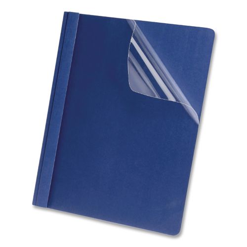 Smooth and clear front cover accentuates title page. Linen-like back cover adds texture and color. Front Cover Color(s): Clear; Color Family: Clear; Back Cover Color(s): Navy; Sheet Size: 8.5 x 11.