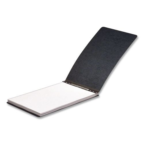 Pressboard durability combined with a smooth, distinctive finish. Tape reinforced hinge holds up to frequent referencing. Embossed cover panel for perfect placement of title. Durable pressboard. Tabloid size holds up to 3" of paper. Front Cover Color