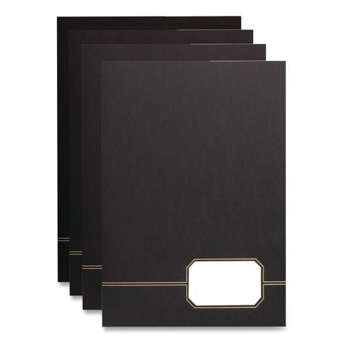Embossed gold foil accents premium cover stock. Die-cut slot displays business card on outside front cover for instant recognition. For 11 x 8 1/2 sheets. Front Cover Color(s): Black/Gold; Color Family: Black; Back Cover Color(s): Black/Gold; Sheet S