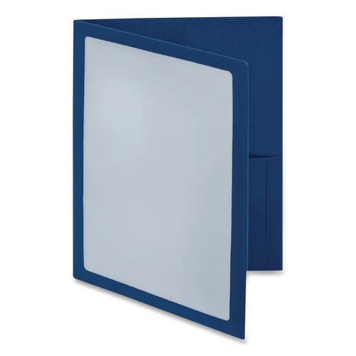 Provides a custom look with framed insertable front cover. The wing-style pockets are definitely a cut above the straight horizontal. Keeps business card at hand in die-cut holder on inside back pocket. Holds 100 sheets. Front Cover Color(s): Clear;