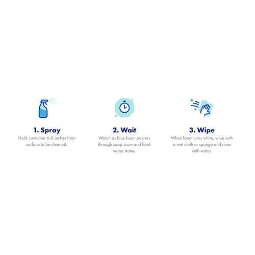Takes the guesswork out of cleaning. Spray on the penetrating blue foam and OxiClean Stain Fighters go to work on contact, breaking up soap scum and hard water stains. When the foam turns white, just wipe and rinse to reveal a brilliant shine. Cleans