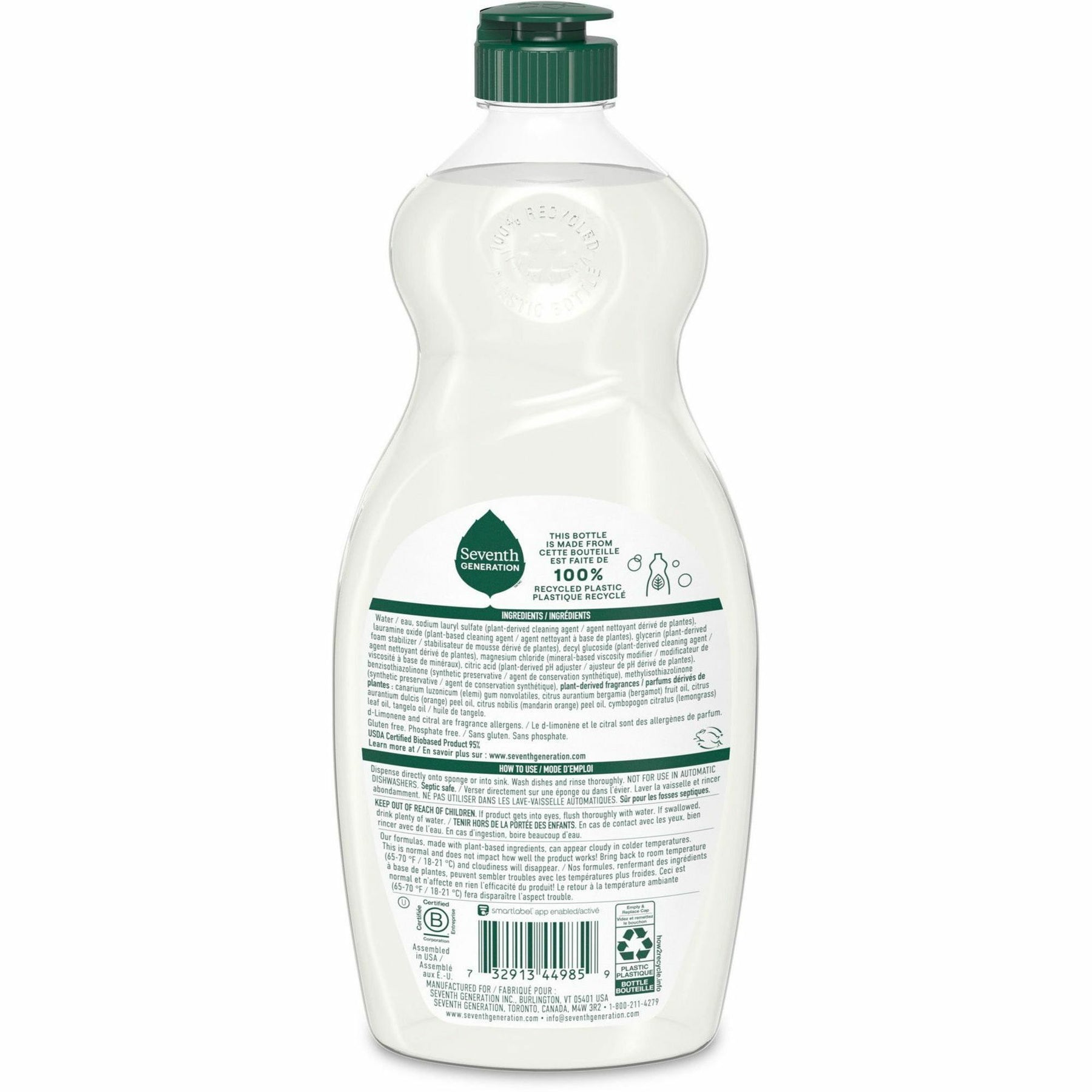 Get sparkling results from plants, not petroleum. Hypoallergenic, nontoxic formula with plant-derived cleaning agents effectively cuts though grease and dried-on food to return your dishes to a sparkling clean for a shine without compromise. USDA Certified Bio-based dish soap is EPA Safer Choice Certified to be safer and certified at Leaping Bunny for not testing on animals. Bottle for the Natural Dish Liquid Soap is made from a high percentage of post-consumer recycled plastic (excluding colorant).