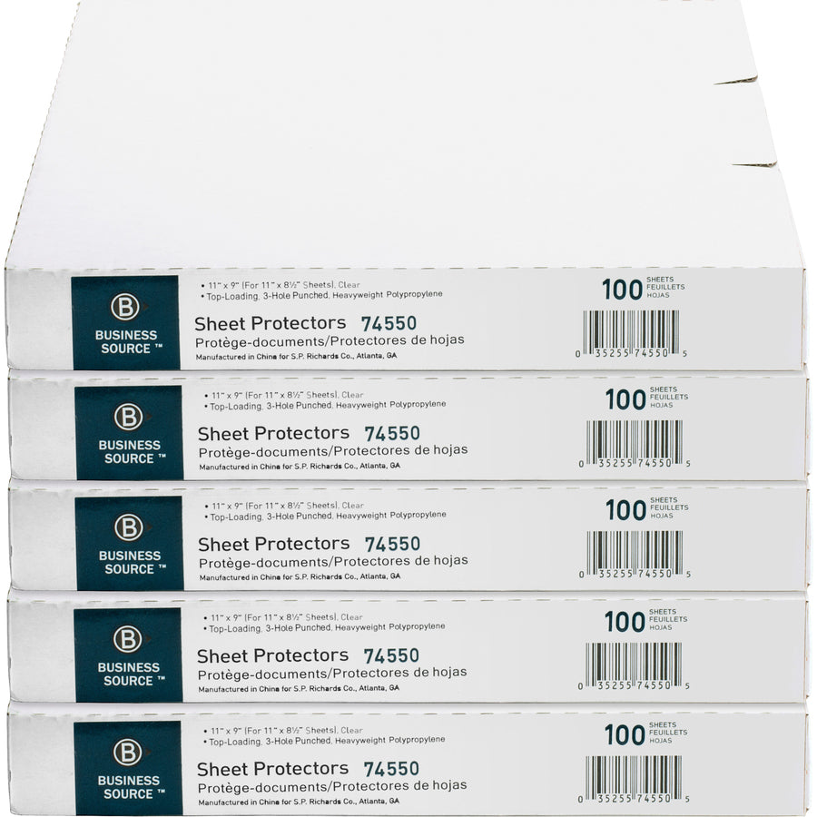 Durable, top-loading sheet protectors hold letter-size inserts without punching. Printed materials do not stick or lift off this specially formulated polypropylene material. Design features a reinforced strip at binding edge and three-hole punched sides. Die-cut corners on ring side allow pages to turn freely. Oversized ring binders and indexes are sold separately.
