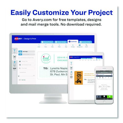 High-gloss clear labels provide a premium, custom-printed look. Ideal for bright colored surfaces. Easy Peel® label sheets bend to expose Pop-Up Edge® for fast peeling. Easy to customize with free templates and designs at Avery Design & Print. Perm