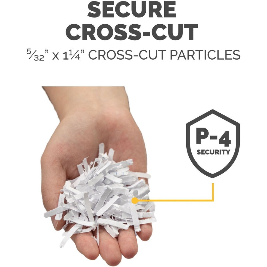 - Shreds 11 sheets per pass into 5/32 x 1 9/16" cross-cut particles (Security Level P-4).