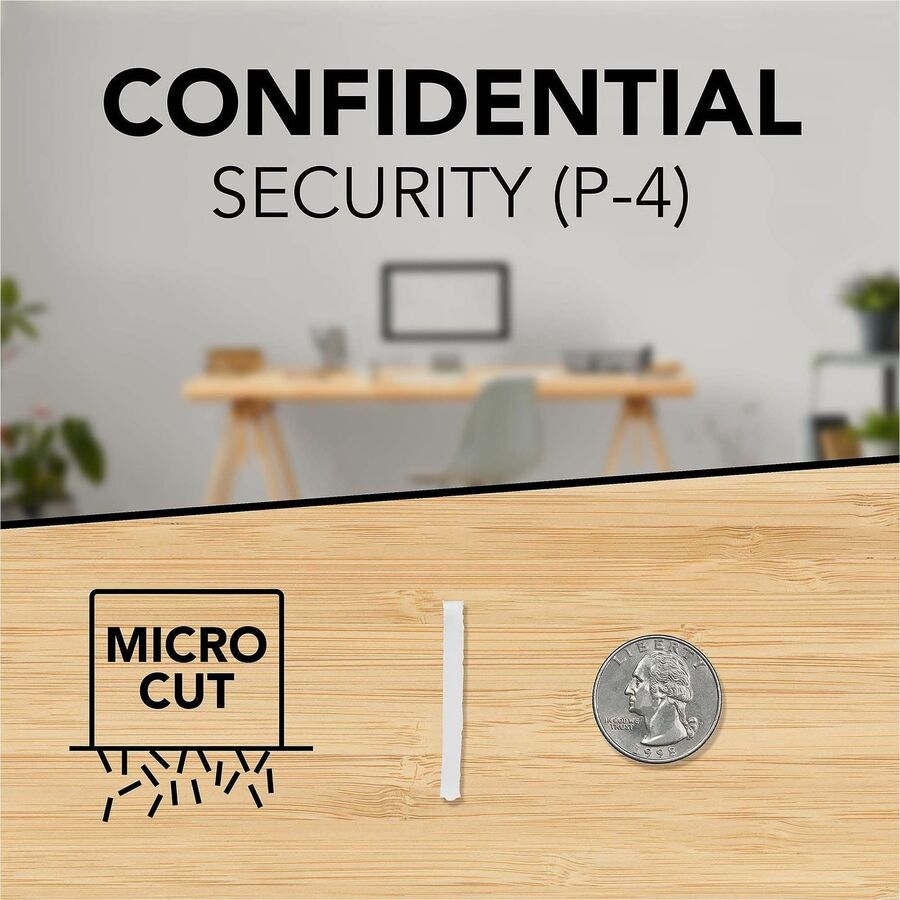 Cross-cut shredder features a P-4 security level to provide a strong, steady option for secure office shredding. The 6-gallon, pullout bin provides an abundance of space for shreds and allows easy emptying. 120-minute runtime makes it an excellent choice for large jobs. Auto-reverse jam prevention clears jams with ease. Whisper Shred technology operates below 58 decibels to eliminate noisy disruptions in quiet offices. The Eco Power Save function conserves energy by automatically turning the shredder off after 2 minutes of inactivity. A modern interface with user-friendly touch controls ensures ease of use. Durable blades shred easily through staples and paper clips. Micro-cut shredder is designed to accept up to 15 sheets of paper at a time.
