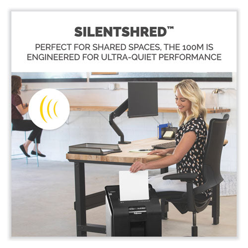 The 100M features a versatile FlexShred capability that shreds up to 100 sheets automatically or 10 sheets manually. Shred credit cards, paper clips and staples using the manual slot. The micro-cut P-4 security level provides superior protection