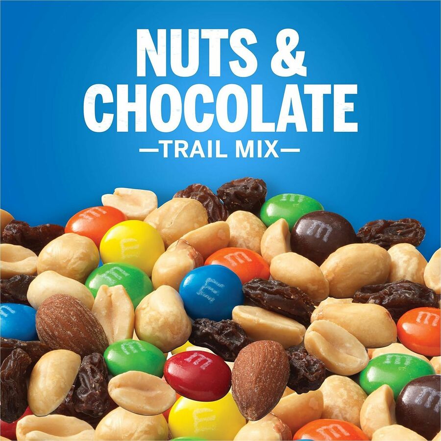Enjoy this nut and chocolate trail mix as a perfect on-the-go snack. Trail mix contains a delicious blend of peanuts, raisins, chocolate pieces, cashews and almonds.