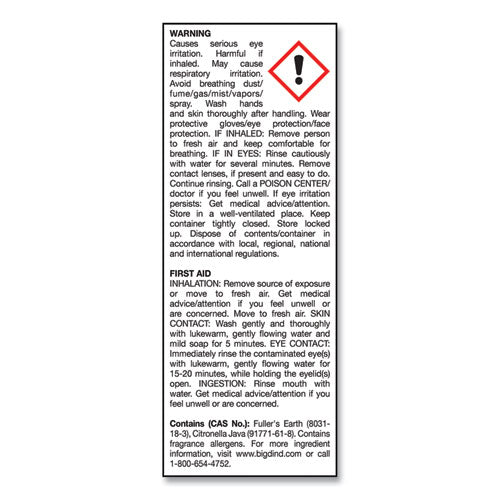 BIG D® DUMPSTER D+C is formulated with special odor absorbing granules and citronella proven to deter annoying flying insects. This unique and safe formula works fast, is long-lasting, and neutralizes odors on contact. Use to quickly and effectively