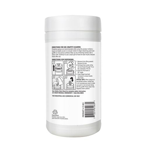Use on a variety of hard surfaces including bathroom partitions, phone booths, lamp posts, bus stops and seats. Non-flammable, these wipes do not contain amyl acetate or methylene chloride making the towels safer to handle. Towels stay moist for grea