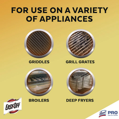 Get grease-cutting performance that powers through tough, baked-on oven messes in several minutes. Professional EASY-OFF Oven & Grill Cleaner gives staff a fast-acting formula can be used on warm and cold ovens for added convenience. Add a versatile