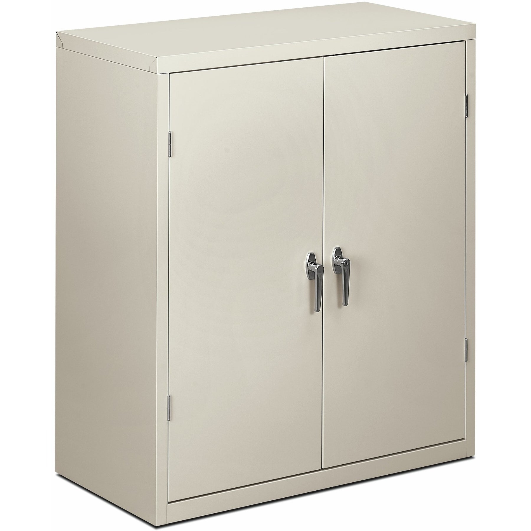 Industrial grade steel with on locking and one fixed, satin chrome double handles. HON "One Key" interchangeable lock core. Three-point locking system. Reinforced base with leveling glides. Tough construction provides extreme durability. Shelves adju