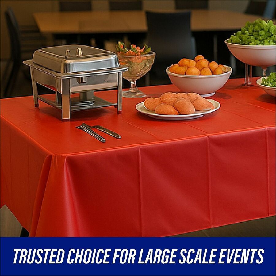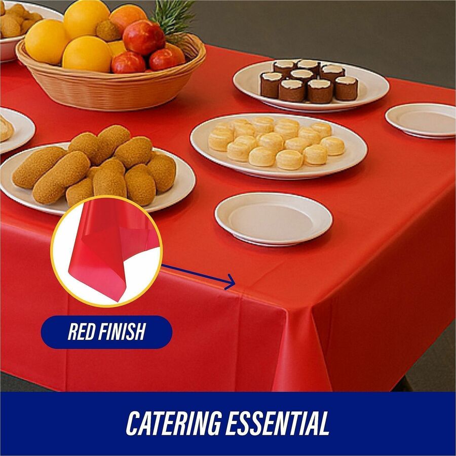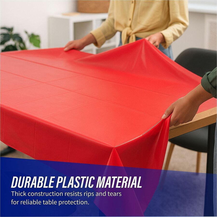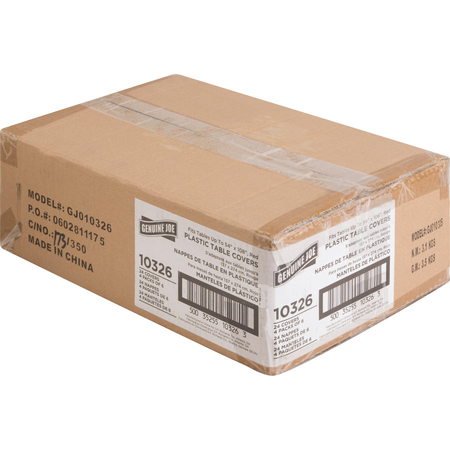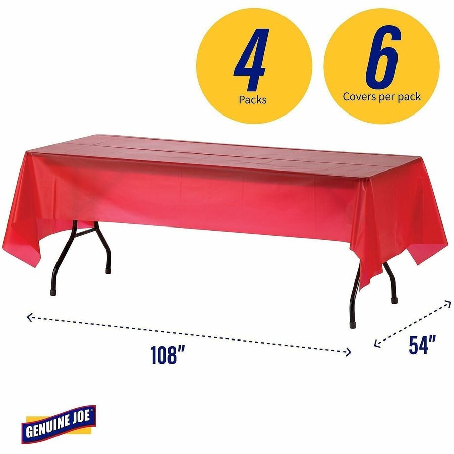 Genuine Joe Table Covers, Plastic, 54"x108", 6/PK,4PK/CT,Red