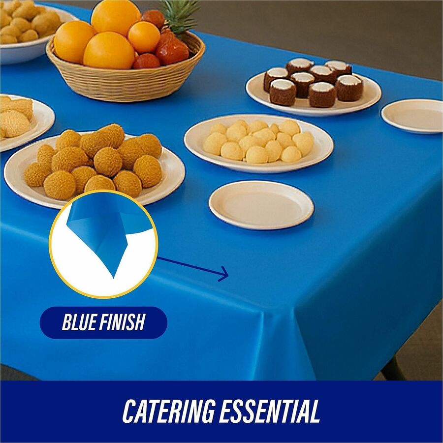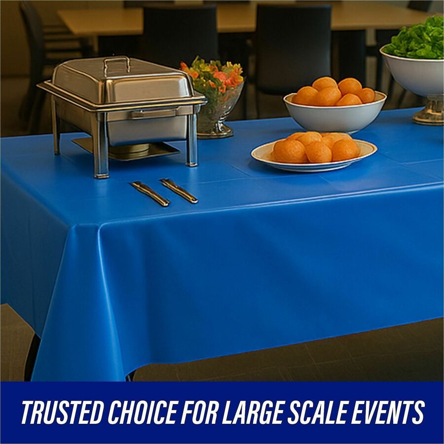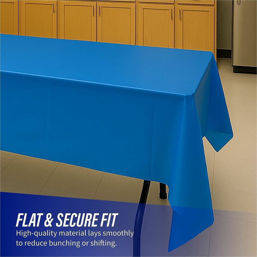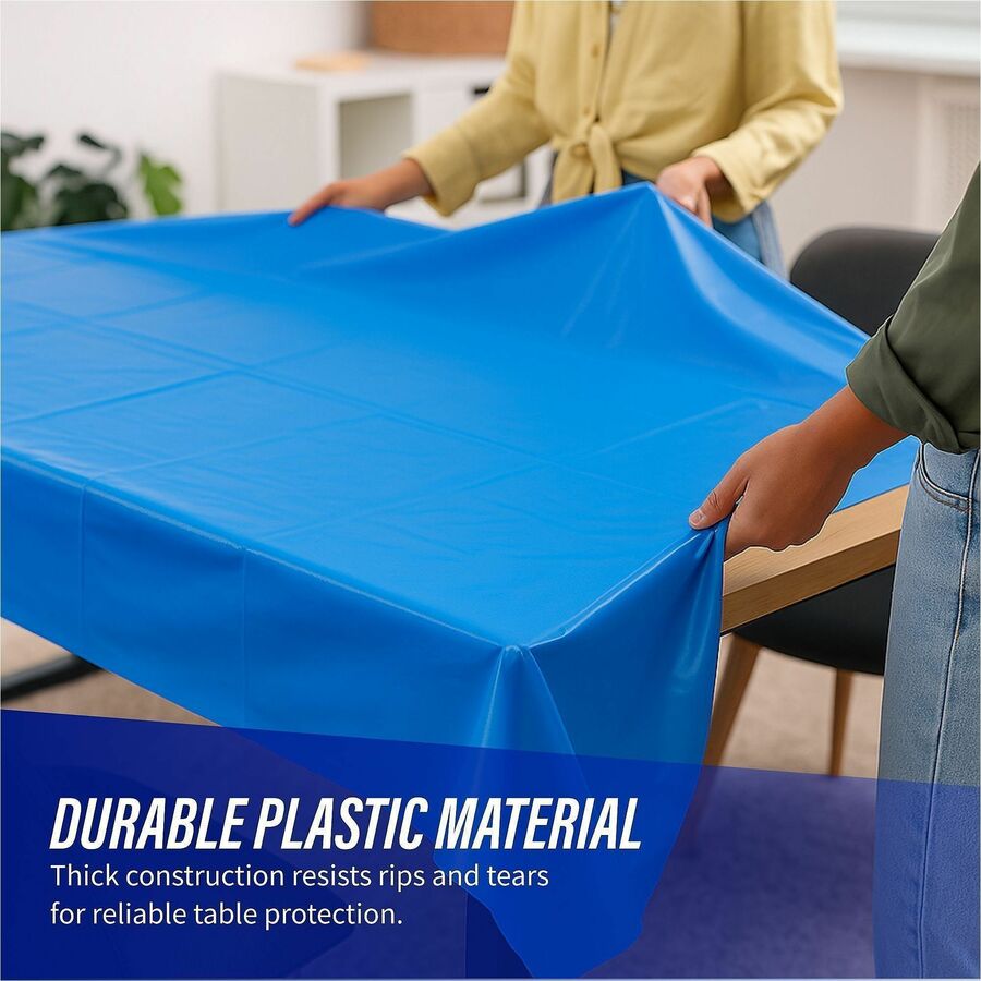 Present a clean, uniform look for your next banquet, party or function with this durable table cover. The pre-cut plastic also protects your rectangular tables. Table covers are designed to fit standard-size cafeteria and conference tables.