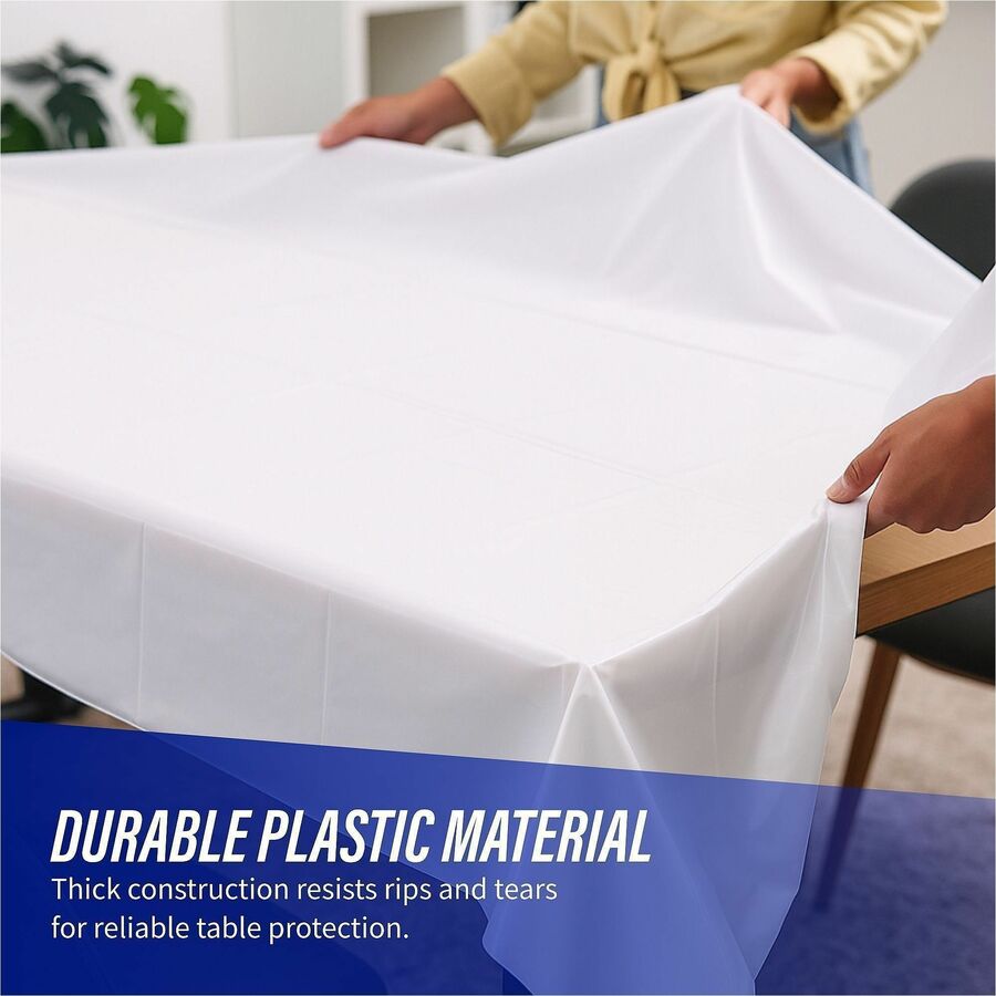 Image of Genuine Joe Table Covers, Plastic, 54"x108", 6/PK, White