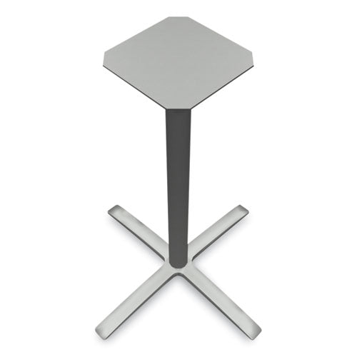 Support a productive standing height work environment. The lightweight base makes movement throughout your space a breeze. Easily attach solid steel brackets to a between table top using pre-drilled holes. Cast aluminum base is available in platinum