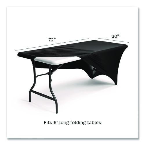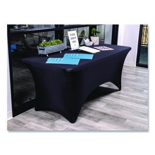 Easily transform resin- or laminate-wood-top tables into elegant presentation platforms in seconds. Tablecloth fits snug over the table for a tailored fit, and reinforced leg-pockets keep the tablecloth secured to the table while preventing tears and