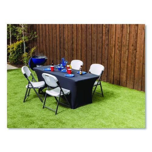 - Fitted spandex-stretch tablecloth.