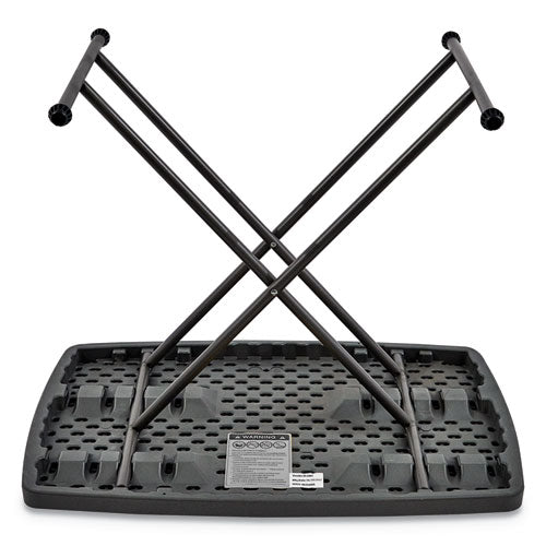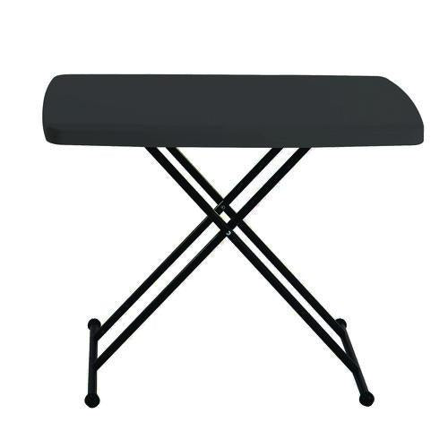 Lightweight, durable and portable. The perfect size table provides extra space. The dent- and scratch-resistant top is easy-to-clean and is constructed of blow molded high-density polyethylene. Heavy gauge, sturdy 1" steel tube legs, with charcoal gr