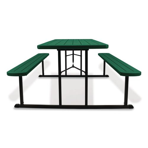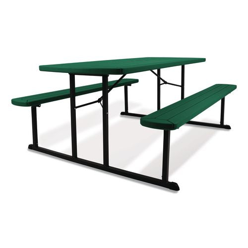 Introducing the revolutionary Folding Picnic Table by NPS, where gatherings transform into lively experiences! Crafted for those who cherish the joys of al fresco dining, this versatile table is more than just furniture—it's your go-to companion fo- Folds flat to 3" height for storage during winter and features a convenient hole (with a cover) for umbrella placement, ensuring shade on sunny days.