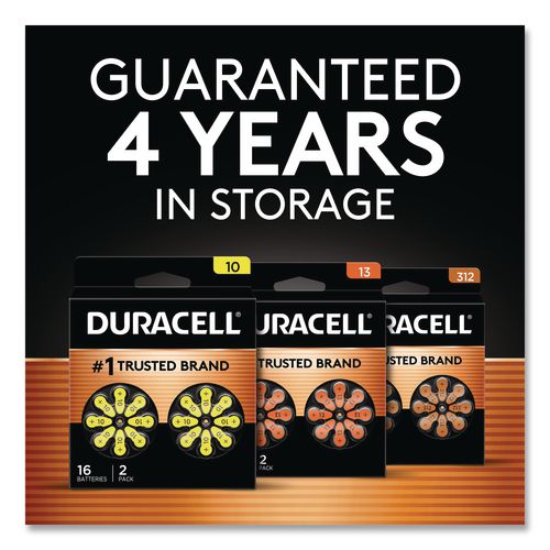 Hear every moment with long-lasting power in Duracell Hearing Aid Batteries. Duracell Hearing Aid batteries are color-coded, making it easy to find the size that's right for you and guaranteed for four years in storage, so you can rest assured they w