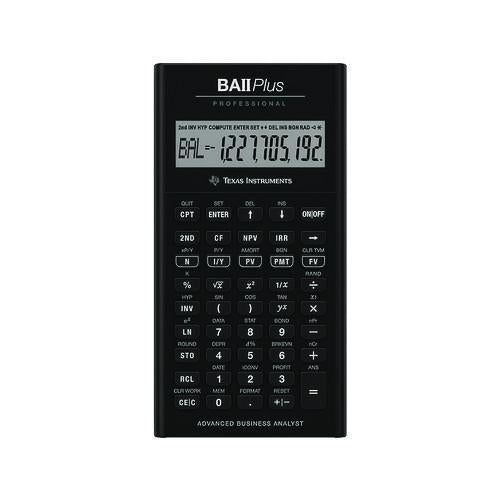 SKU: TEXBAIIPLUSPRO Manufacturer: TEXAS INSTRUMENTS Mfr. Part Number: BA-II PRO Alternate Part Numbers: TEXBAIIPLUSPRO, TEX-BAIIPLUSPRO, BA-II PRO, 30033317192046 (GTIN), 00033317192045 (GTIN), 90033317192048 (GTIN) Country of Origin: CN (CHINA) TAA Compliant: No UNSPSC Code: 0044101801 Unit of Measure: EA (1 Each) UPS Shippable: Yes Air Shippable: No Item Dimensions: 9.69 in. x 6.70 in. x 0.95 in. Weight: 0.6500 lb. Expiration Date: No Environmental Properties