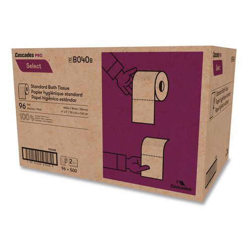 SKU: CSDB040 Manufacturer: CASCADES TISSUE GROUP Mfr. Part Number: B040 Brand Name: Cascades Alternate Part Numbers: CSDB040, CSD-B040, B040, 10067220610409 (GTIN), 00067220610402 (GTIN) Country of Origin: US (United States) TAA Compliant: Yes UNSPSC Code: 0014111704 Unit of Measure: CT (Carton of 96 Rolls) UPS Shippable: Yes Air Shippable: Yes Item Dimensions: 16.00 in. x 16.00 in. x 16.75 in. Shipped Dimensions: 16.00 in. x 16.00 in. x 16.75 in. Weight: 28.0000 lb. Expiration Date: No Environmental Properties