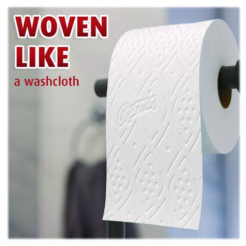 Get sparkly clean with Charmin Ultra Strong. It's 4X stronger when wet and has a diamond weave texture. It's woven like a washcloth and it holds up when you wipe. It even cleans better so you can use less and go longer without changing the roll. We a