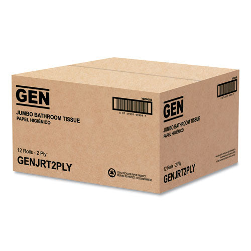 Image of General Supply Jumbo Bath Tissue, Septic Safe, 2-Ply, White, 3.5" x 750 ft, 12/Carton