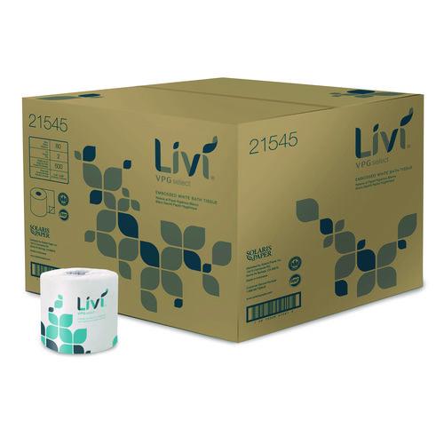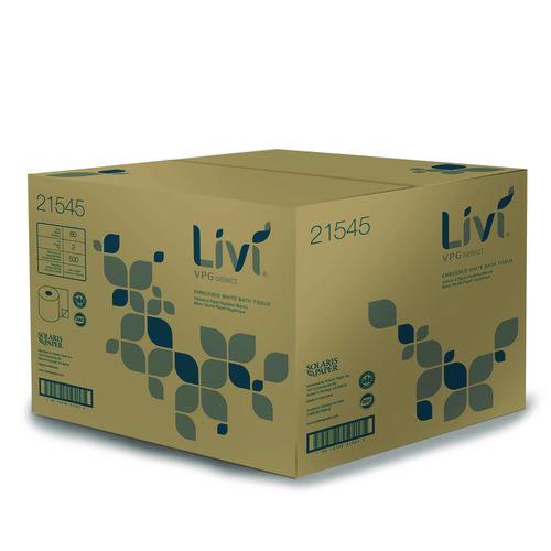 Elevate your restroom with Livi® VPG Select Bath Tissue. The elegant, deep embossing with improved clarity and hand feel adds a touch of sophistication. The Livi® VPG Select Bath Tissue is the perfect choice for upscale lodging, hospitality and off