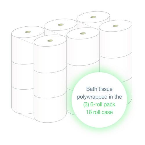 - Smaller bath tissue core allows for 100% more product on each roll (versus standard tissue rolls) reducing roll changes and labor costs.