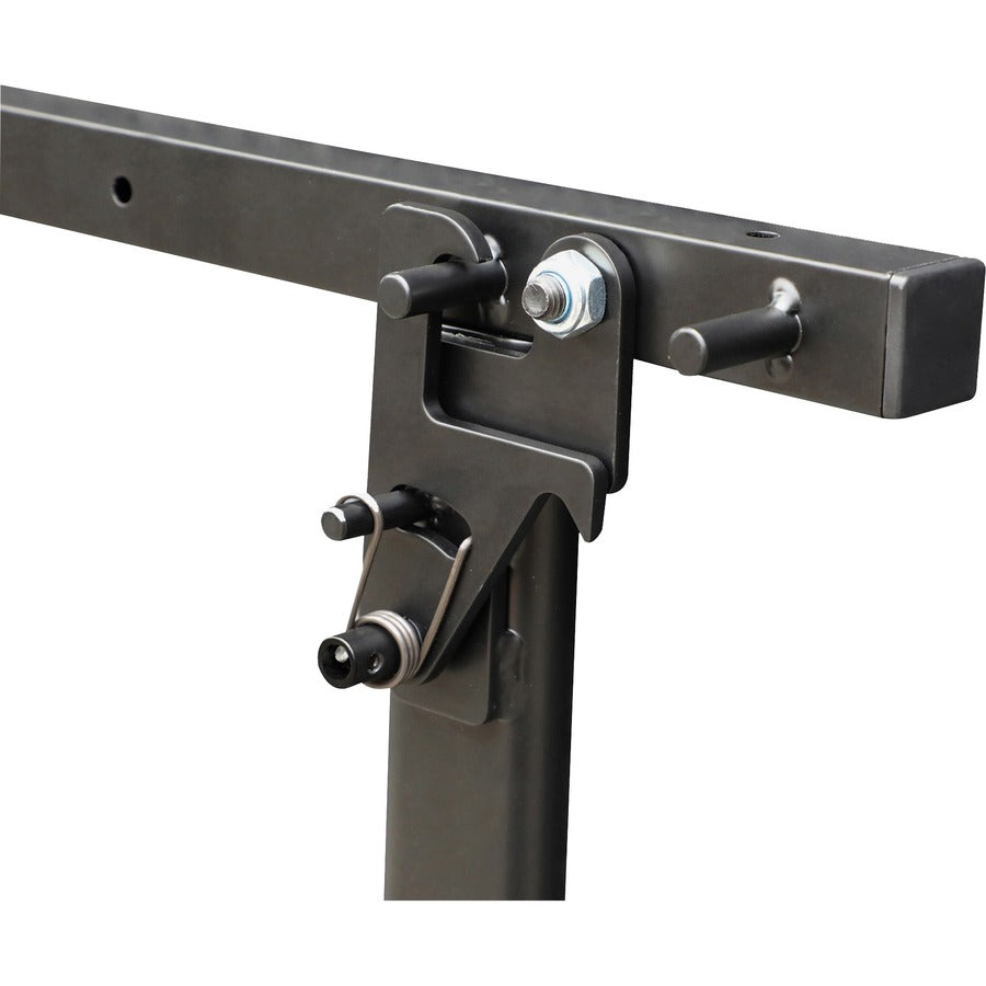 Shift 2.0 Flip and Nesting Mobile Table is perfect for the training or conference room. Rectangular top flips up with a simple lever mechanism to nest with other tables for space-saving storage. Improved 1" thick top is made of scratch-resistant laminate with rounded corners. A plastic grommet is positioned near both ends for convenient cord management. Table includes sturdy steel frame with perforated modesty panel and storage channel. It rolls easily on four casters (two locking).