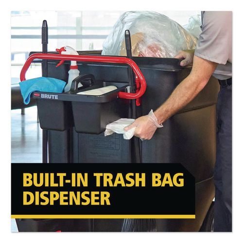 This retrofittable ergonomic handle supports day-to-day tasks and features a removable caddy for easy dumping. The caddy includes two integrated stick good holders for quick tool access and a built-in trash bag dispenser to keep supplies organized on
