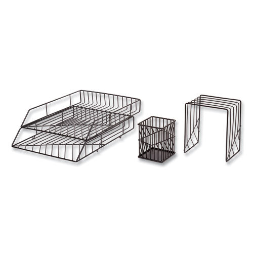 Image of U Brands Vena Desktop Organization Kit, 8 Compartments, Letter Sorter, Paper Tray, Pencil Cup, Black, Metal