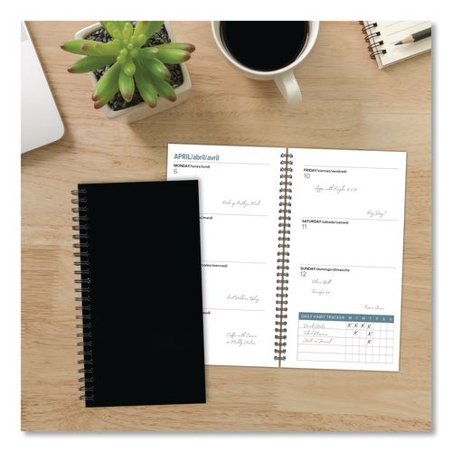 The Black Softcover Weekly Spiral Planner is a classic choice that makes a bold statement without unnecessary frills. Whether you're a student, professional or creative, this planner is a reliable, iconic companion that exudes sophistication while ke- A compact, travel-sized companion, this planner is the perfect tool for managing schedules at a glance.