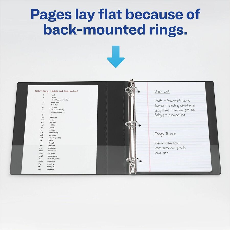 Keep lecture notes, procedures and homework assignments organized with an Avery® Durable View Binder. The durable construction is ideal for frequent referencing. The DuraHinge® design is stronger, lasts longer and resists tearing, and the DuraEdge