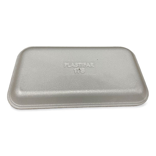 Made of sturdy, high quality foam. Helps keep products fresh for longer periods of time. Compatible with auto wrapping equipment, this foam tray makes packaging meats, cheese and produce easy and efficient, helping to save time and energy. #17S Tray.