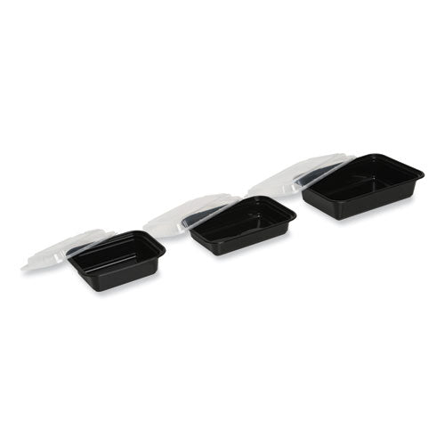 General Supply Microwavable Food Container with Lid, Rectangular, 38 oz, 8.81 x 6.02 x 2.48, Black/Clear, Plastic, 150/Carton