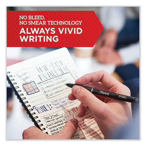 The power of Sharpie is now in a gel pen with the Sharpie S-Gel. With no smear, no bleed technology and bold, best-in-class ink, this Sharpie pen delivers always-vivid writing. It's a high-performance gel pen with a sleek, professional look that make