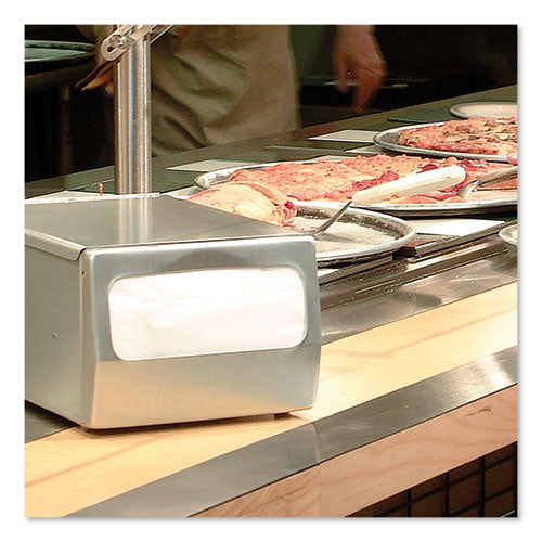 The Tork® Advanced Soft Dispenser Napkin embossing provides a quality feel. With an identical folded size to full-size dispenser napkins, it provides an open size of 5" shorter to deliver big cost savings. Largest open and folded size dispenser napk