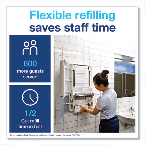Tork® PeakServe® Continuous® Hand Towel Dispenser is the latest innovation designed for high-traffic washrooms where staff needs to maximize cleaning time and maintain a good flow of guests. Compatible with Tork PeakServe Continuous hand towels, t