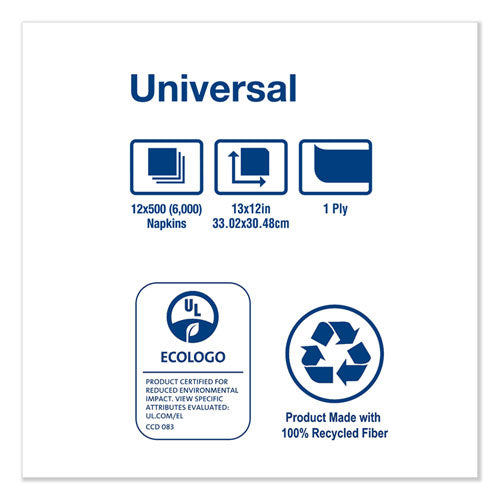 This Tork Universal Dispenser Napkins embossing and semi-crepe texture gives a quality feel. Identical folded size to full size dispenser napkins provides an open size of 5" shorter making it a big cost savings. Ideal for self-service establishments