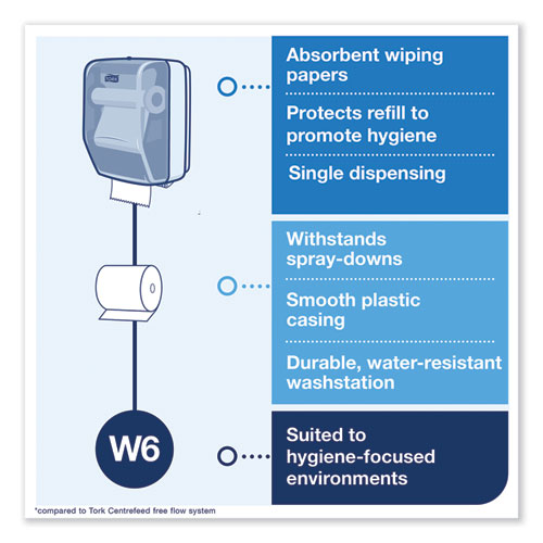 The Tork® Washstation Dispenser in Performance Design is a one-at-a-time paper wiper dispenser that offers a high level water resistance and accommodates a large capacity refill. Designed from the ground up, this dispenser fits seamlessly into your