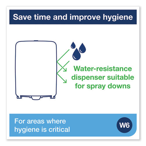 The Tork® Washstation Dispenser in Performance Design is a one-at-a-time paper wiper dispenser that offers a high level water resistance and accommodates a large capacity refill. Designed from the ground up, this dispenser fits seamlessly into your