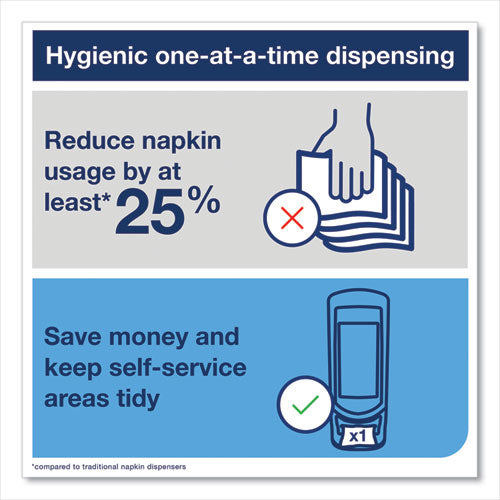The Tork® Xpressnap Cafe® Napkin Dispenser is ideal for limited service restaurants, breakrooms and coffee stations and anywhere a small napkin is preferred. This compact dispenser system delivers napkins one-at-a-time, improving hygiene and reduc