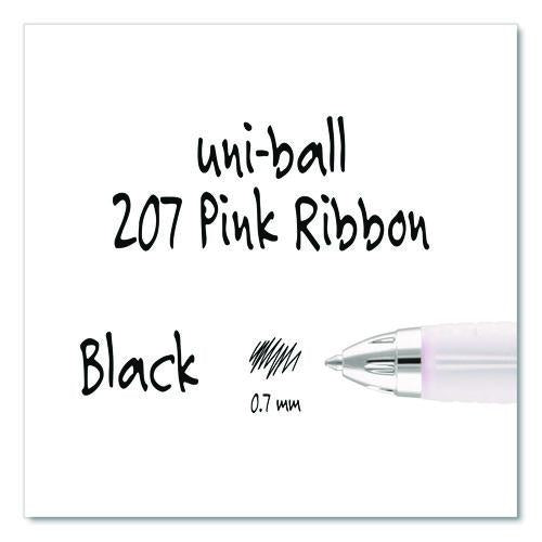 Champion the cause of breast cancer research with these Pink Ribbon Edition 207 Retractable Gel Pens from uni-ball. The 0.7 mm medium point gel pens have a beautiful pink barrel with stylish metallic accents and a Pink Ribbon logo. From the sale of e