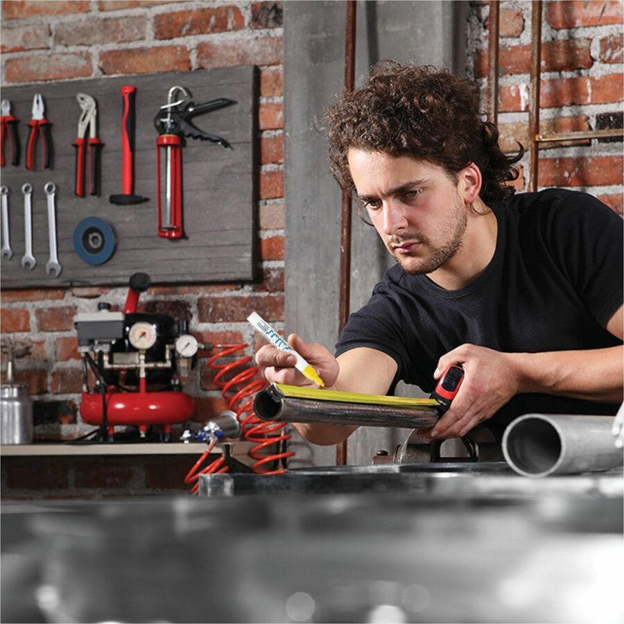 Create permanent and accurate marks on virtually any surface with Paint PX-21 Oil-Based Paint Markers. Bullet tip with fine point (1.2mm) delivers precise, visible lines. Quick-drying paint is resistant to water, fading, heat and abrasions. Valve-action control provides excellent flow and coverage while preventing the marker from drying out if left uncapped. Permanent paint colors mark opaque and glossy on light and dark surfaces. Metal barrel and durable tip ensure a long marking life. Marker is ideal for manufacturing, construction, automotive, metal fabrication, aviation and more. Use marker to identify parts or equipment outside or marking oily, greasy items.